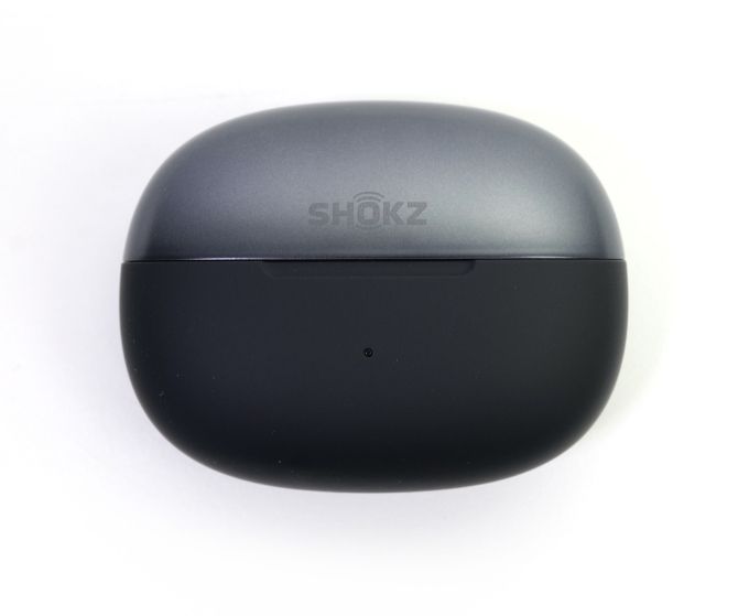 Neben dem Zubehör findet man in der Originalverpackung das Ladegehäuse, in dem sich die Ohrhörer befinden. Die zweifarbige Ladeschale wirkt bereits etwas designorientierter als die schlichteren Ladeschalen anderer Shokz-Ohrhörer.