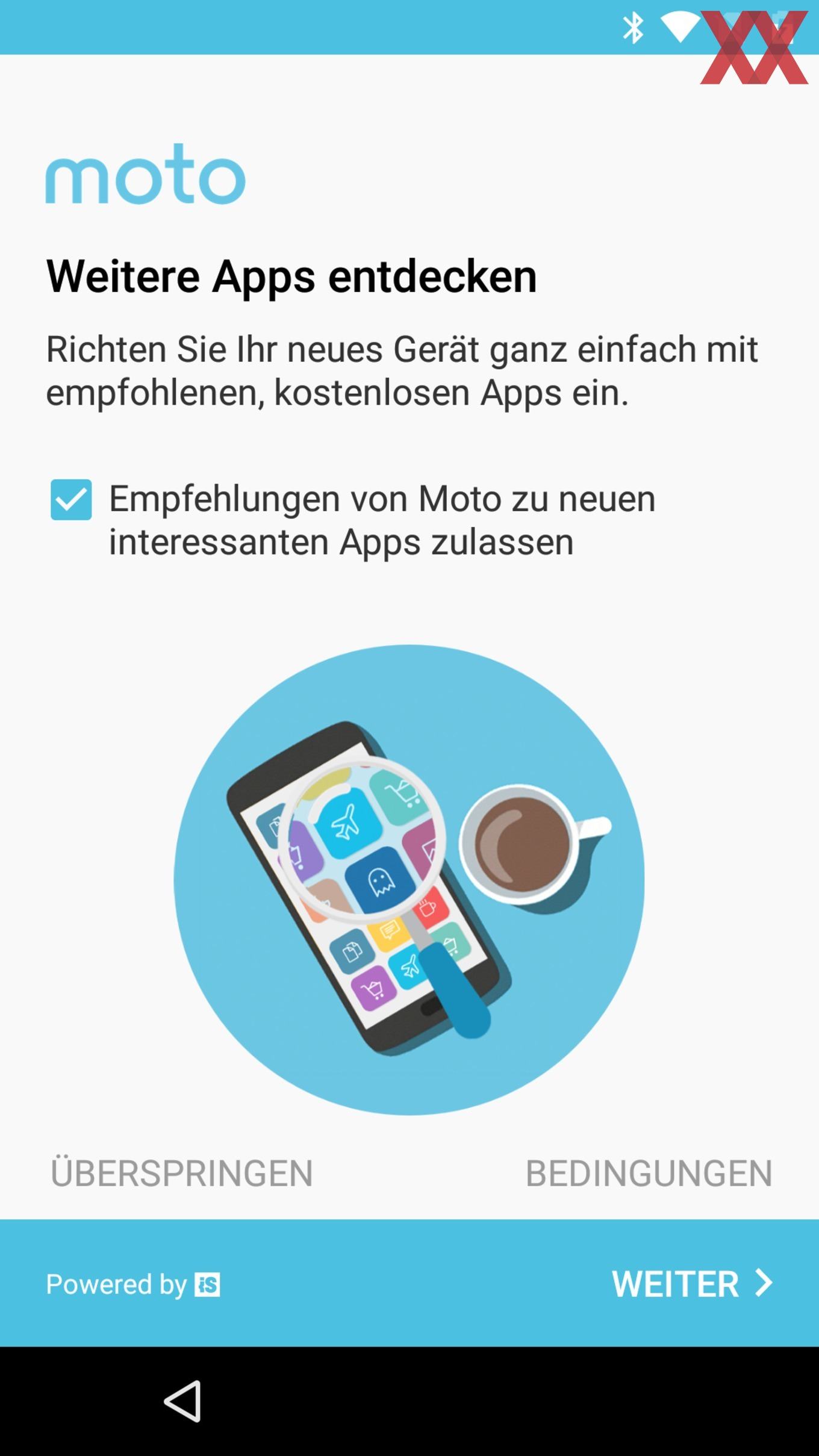 Auf Werbe-Apps und ähnliches verzichtet man - wenn der Nutzer denn während der Ersteinrichtung des Moto G5S aufmerksam ist. Denn während dieser wird gefragt, ob interessante Programme installiert werden sollen. Eine Unsitte, die wir zuletzt unter anderem bei HTC kritisiert haben. Wie bei den Taiwanern kann man diesen Schritt aber überspringen.
