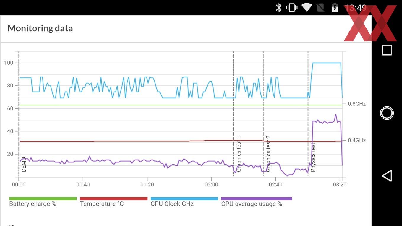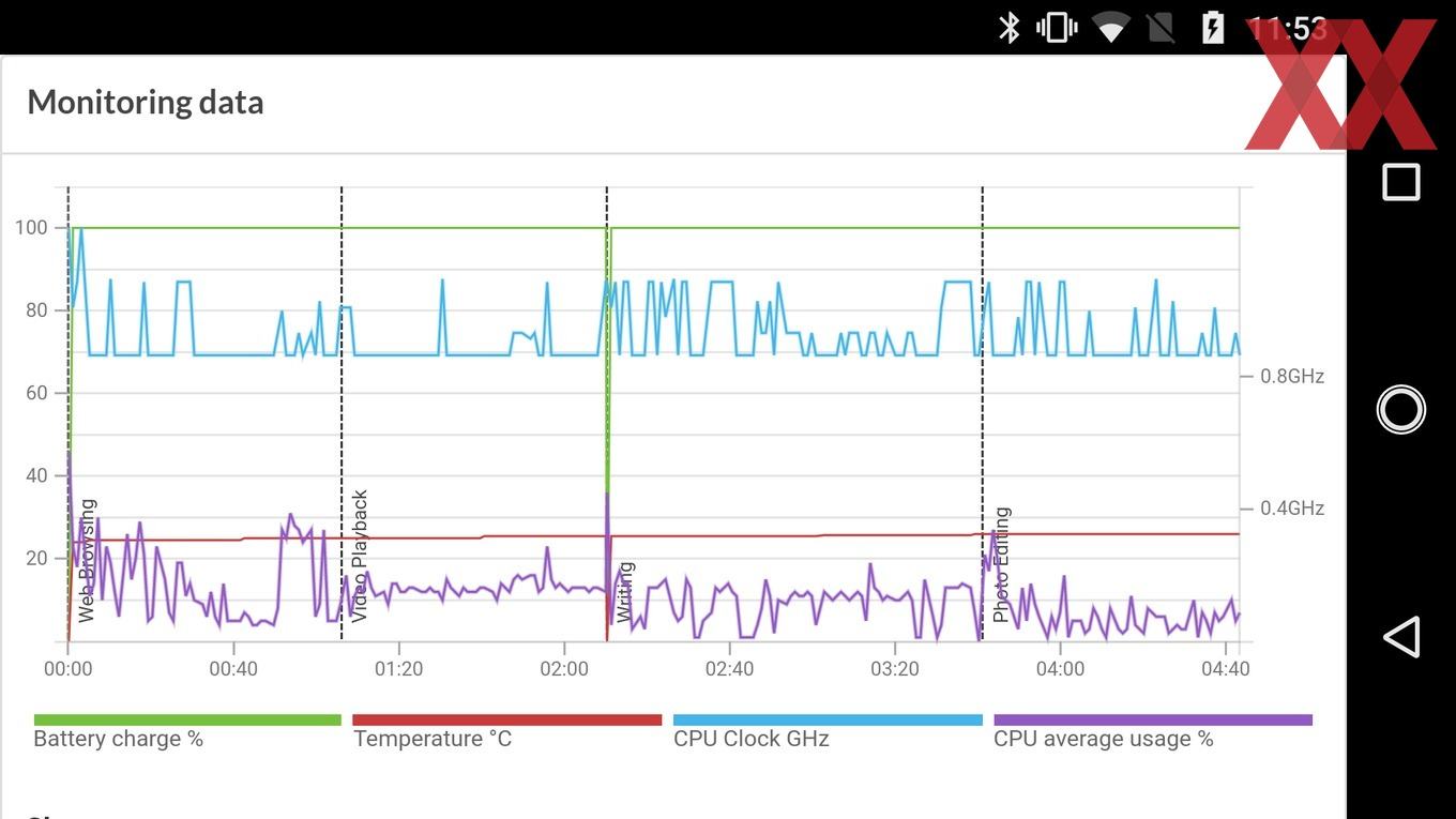 Wie wichtig das schnelle Laden ist, zeigen die Messungen und während des Tests gesammelten Erfahrungen. Denn ein Langläufer ist das Moto G5S nicht, was zu einem großen Teil am SoC liegt. Dessen Fertigung im 28-nm-LP-Verfahren ist alles andere als zeitgemäß und Grund für eine vergleichsweise geringe Effizienz. So reicht es in der Video-Schleife mit lokal hinterlegtem Full-HD-Material und einer Display-Helligkeit von 200 cd/m² nur für eine Laufzeit von rund 9 Stunden. Den üblichen PCMark-Test durchlief das Moto G5S trotz mehrfacher Versuche nicht komplett, an unterschiedlichen Stellen stürzte der Akku-Benchmark ab; gleiches gilt im Übrigen für Geekbench 4.0, nicht aber für Geekbench 4.1.