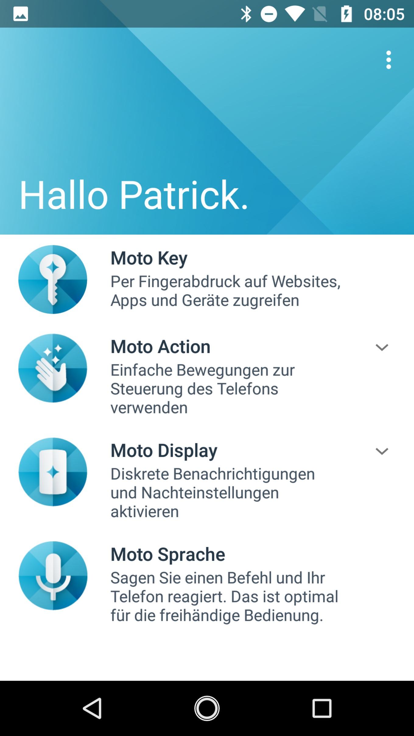 Auch das Moto X4 folgt der Strategie, möglichst wenige Änderungen an Android vorzunehmen. Als Basis dient Android 7.1.1, hinzu kommen eine eigene Kamera-App sowie mit Moto Key, Moto Action, Moto Display und Moto Sprache eigene Bedienungshilfen, die allesamt nicht neu sind. So lassen sich mit Moto Action beispielsweise bestimmte Bewegungen des Geräts zum Starten von Aktionen nutzen, mit Moto Key können Passwörter verwaltet und der Fingerabdrucksensor zum Anmelden auf Webseiten genutzt werden.