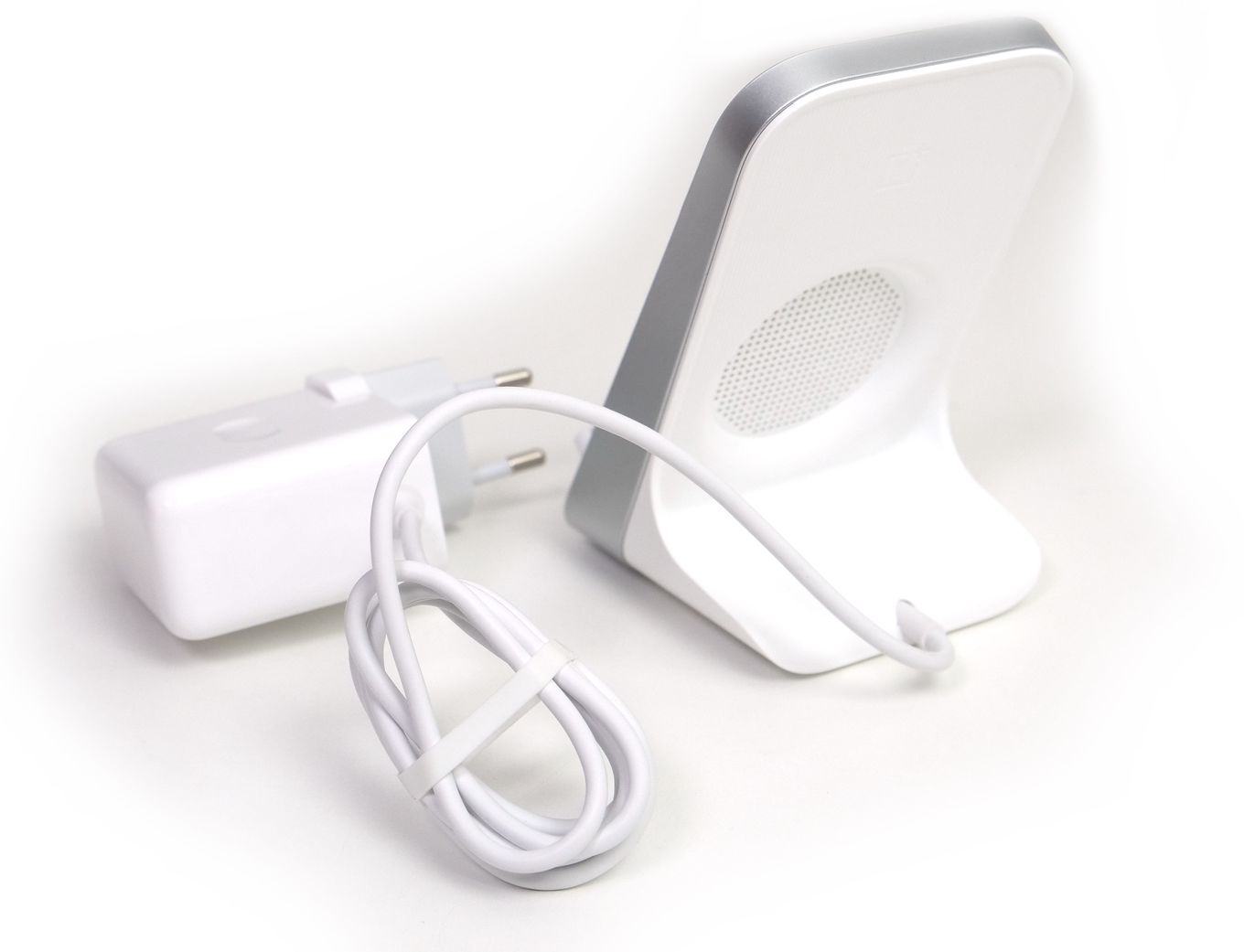 Dieses Ladegerät ist mit dem Qi/EPP-Standard kompatibel, kann in Kombination mit dem OnePlus 8 Pro aber auch eine hohe Ladeleistung von 30 W bieten. Das hat seinen Preis: Die Ladestation wird tatsächlich von einem Lüfter aktiv gekühlt. Dieser Lüfter läuft praktisch direkt an, sobald das Laden startet - und läuft dann auch über die Ladezeit hindurch. Zumindest in stillen Räumen ist dabei ein konstantes Lüfterrauschen klar hörbar.