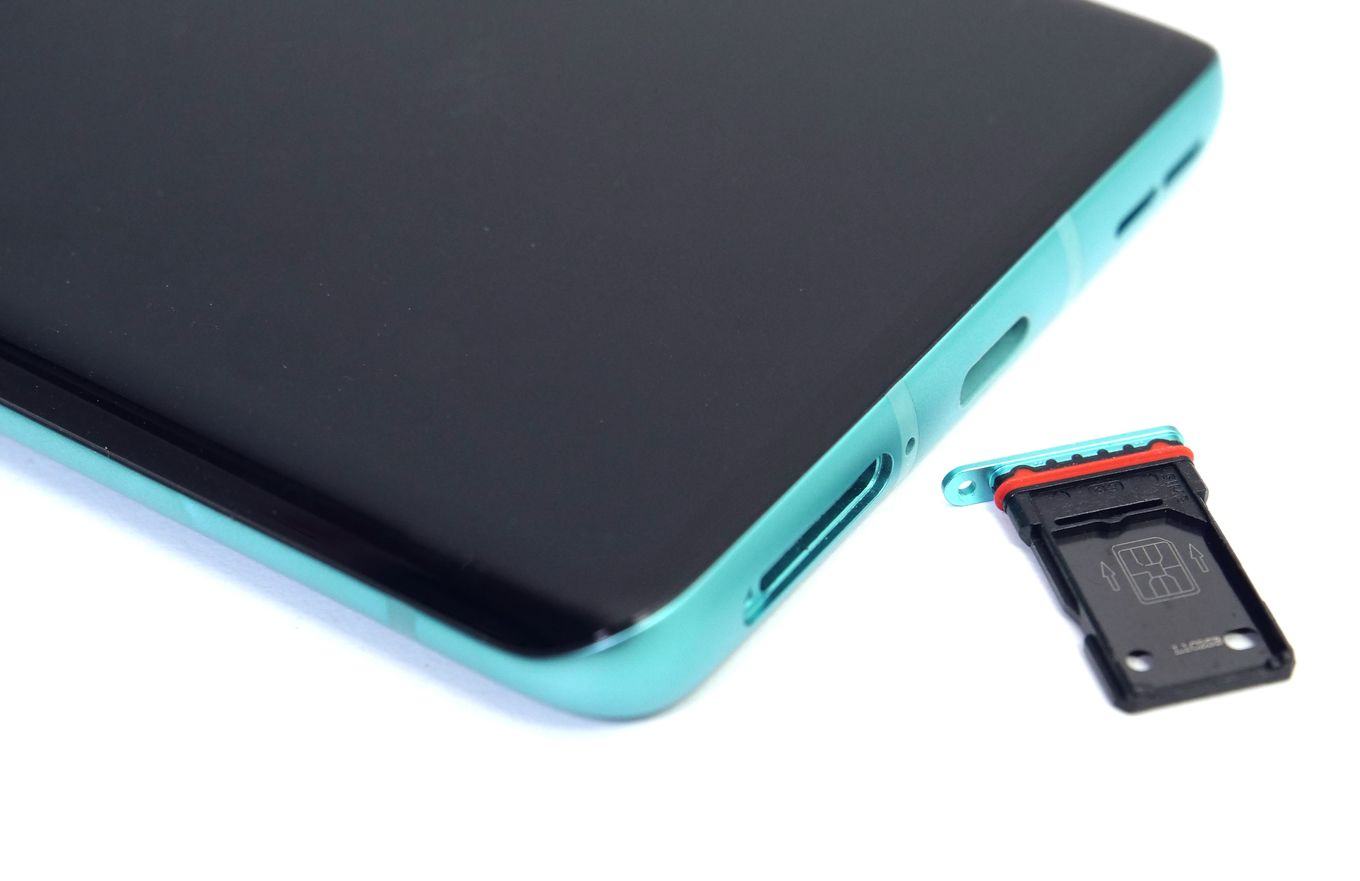 Auch beim Wasser- und Staubschutz hat OnePlus seine bisherige Haltung überdacht. Die aktuelle Generation erhält erstmalig offiziell die Schutzklasse IP68, ist also staub- und wasserdicht. Konstruktiv fällt das vor allem an zwei Stellen auf: Der roten Gummidichtung am Dual-SIM-Kartenträger und der fehlenden Pop-up-Kamera. Denn das OnePlus die Frontkamera wieder ins Display integriert, hängt vor allem mit der Wasserdichtigkeit zusammen.