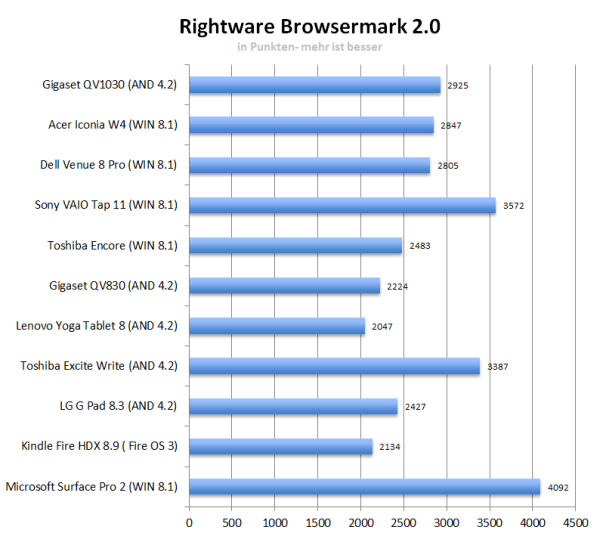 Die beiden Broswserbenchmarks zeigen bereits, dass das QV1030 ein leistungsstarkes Android-Tablet ist.
