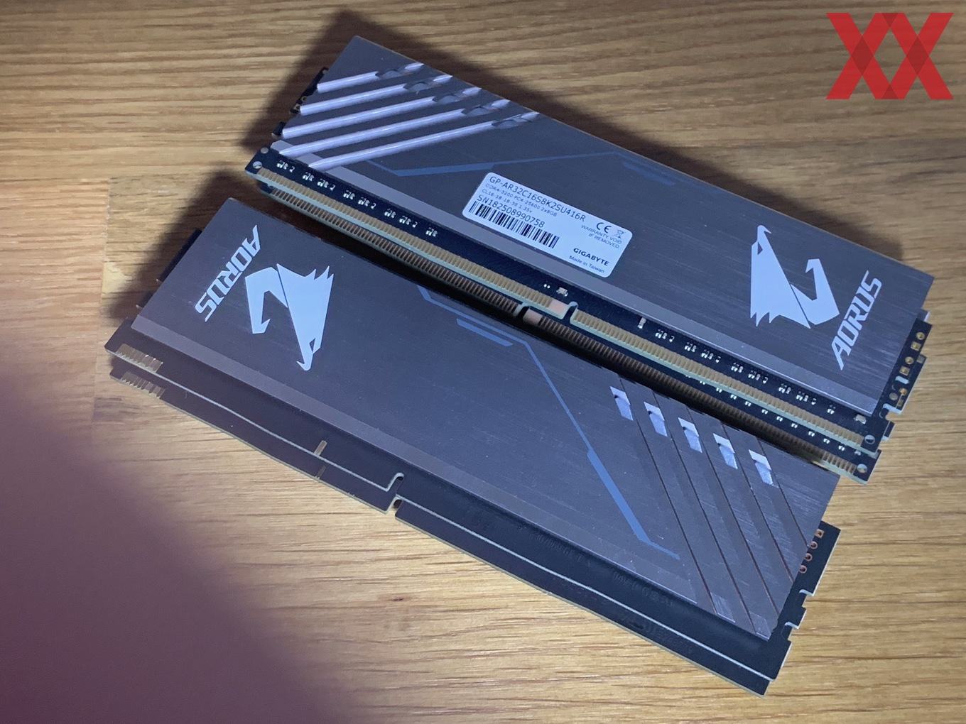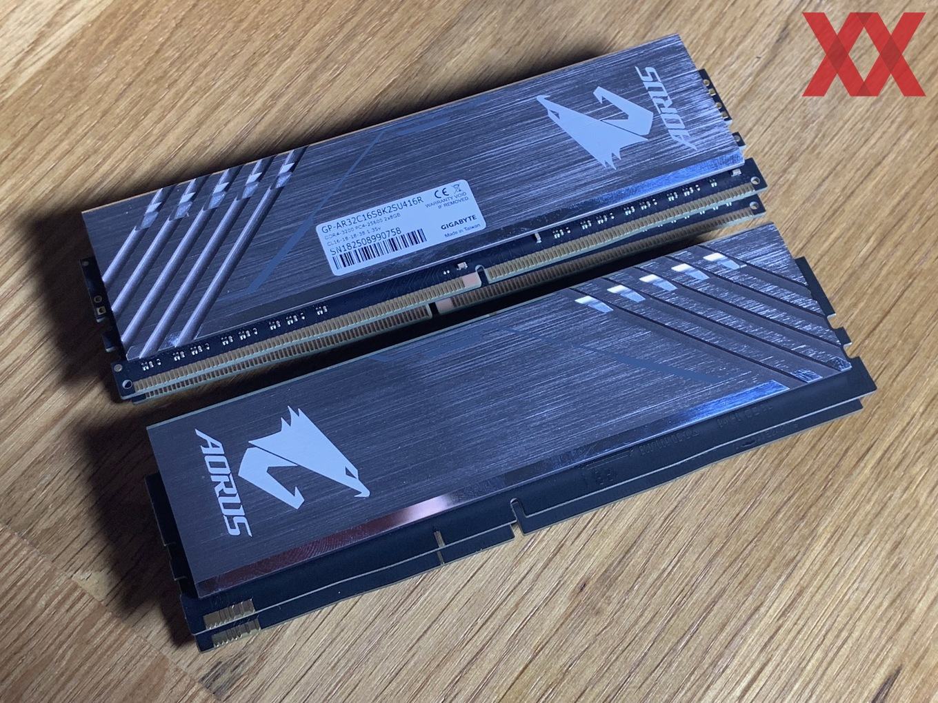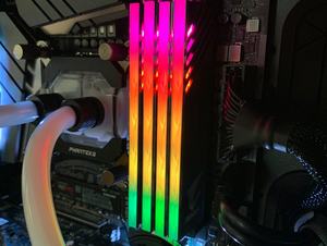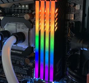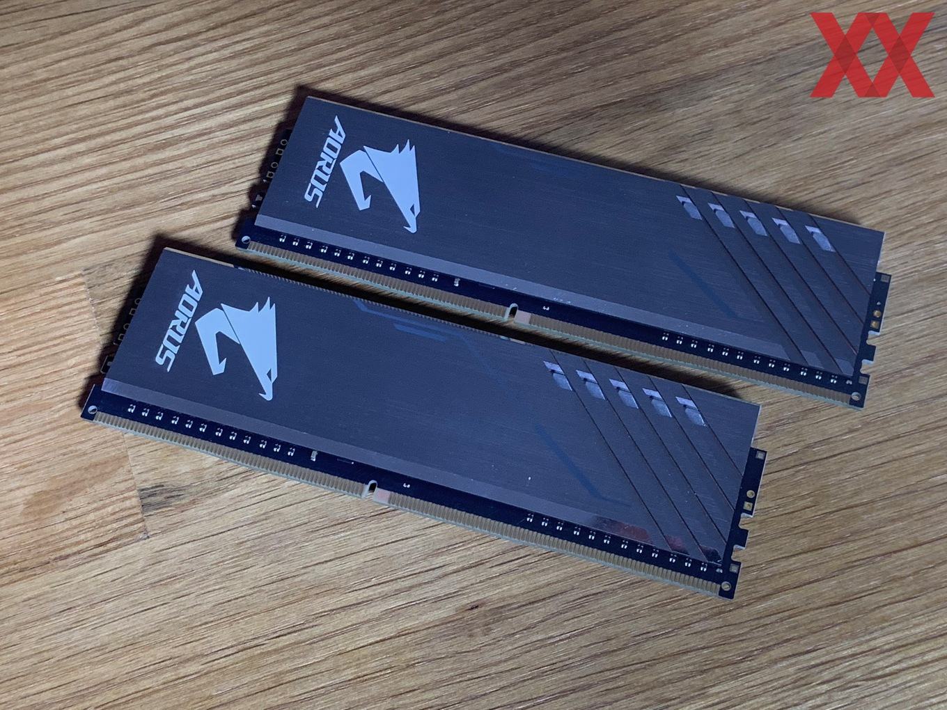 Im Vergleich zu den anderen Herstellern startet Gigabyte zunächst einmal mit wenigen Kits: Das uns vorliegende DDR4-3200-Kit ist das "größte", nämlich nicht nur mit RGB, sondern auch noch mit zwei Speicherdummys, die sich in die freien Speicherslots einsetzen lassen. Bei einem 2x8-GB-Kit hat man dann bei einem Z390-Mainboard nicht das Problem, dass freie Speicherbänke zu sehen sind, sondern kann die Dummys dazwischensetzen. Sie werden auch mit Spannung versorgt und die RGB-Beleuchtung ist auch ansprechbar, insofern wirkt es, als hätte man vier Speichermodule im System.
