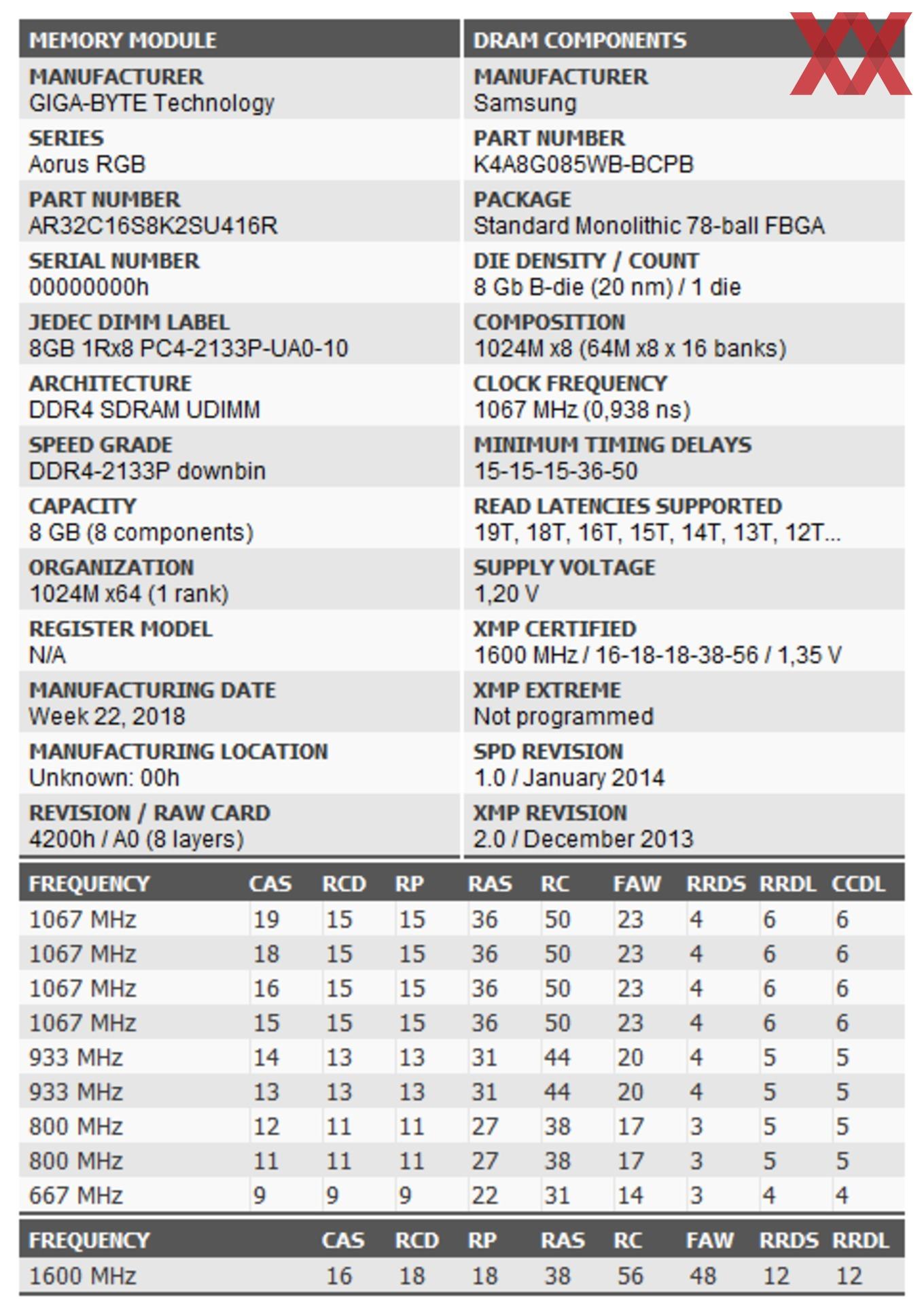 Uns verwunderte - wie bei Team Group - auch der Eintrag 20 nm für die Samsung B-Die im Typhoon Burner, denn eigentlich sind sämtliche B-Die von Samsung in 20 nm gefertigt. Eventuell gibt es hier Unterschiede und es kommen einige Samsung B-Die aus unserem Test direkt von Samsung, andere über den Spot-Markt - nachzuvollziehen ist dies aber für uns nicht.