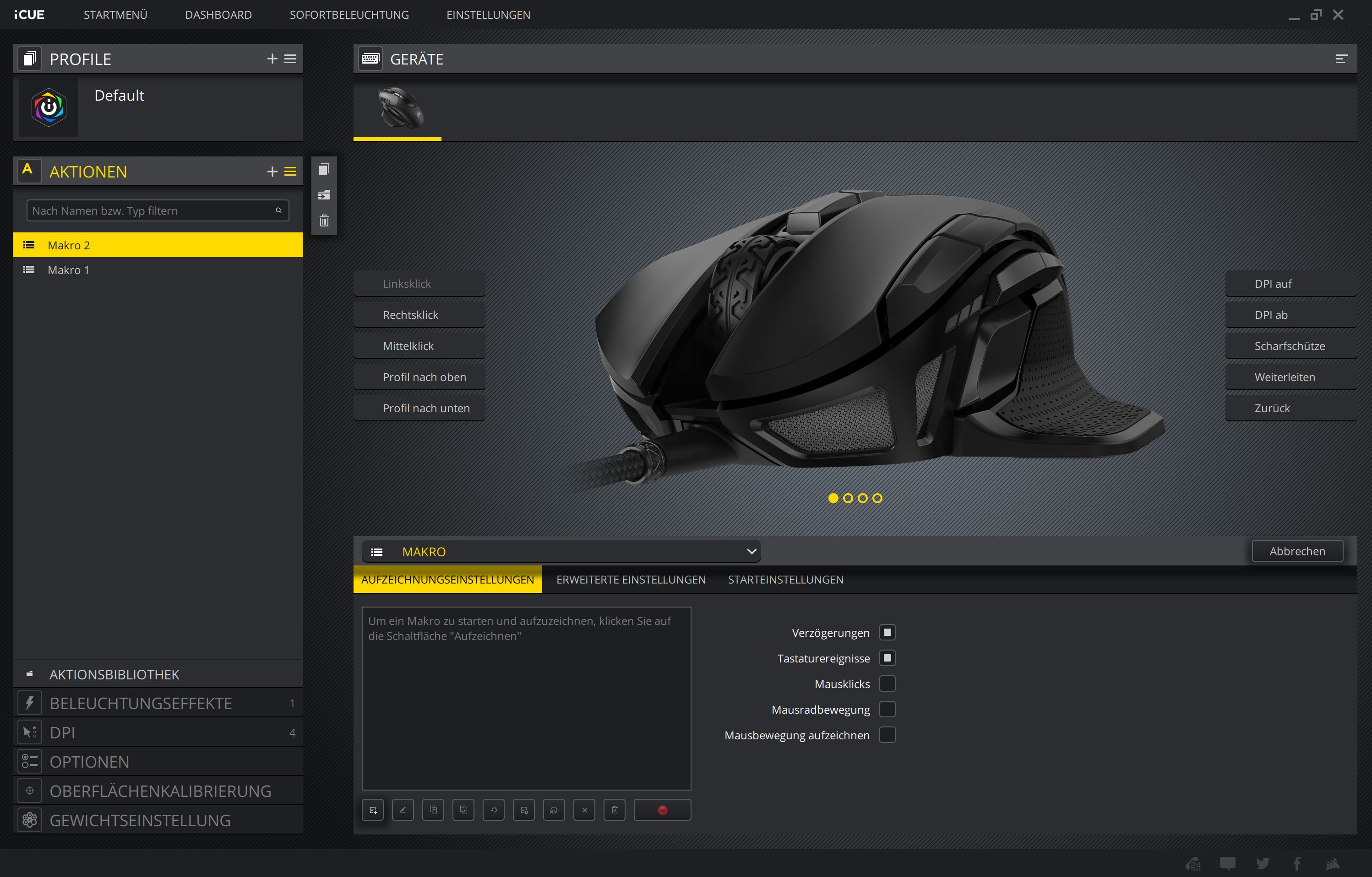 Zum Einrichten der Maus wird Corsairs mächtige iCUE-Software genutzt. Sie deckt weit mehr als die üblichen Grundfunktionen wie Tastenbelegung und Makro-Aufzeichnung ab.