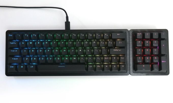 Auch auf die umlaufende A-RGB-Beleuchtung muss nicht verzichtet werden. Beim Ziffernblock verbergen sich hinter den magnetischen Abdeckungen die USB-Typ-Stecker, über die die Verbindung hergestellt wird.
