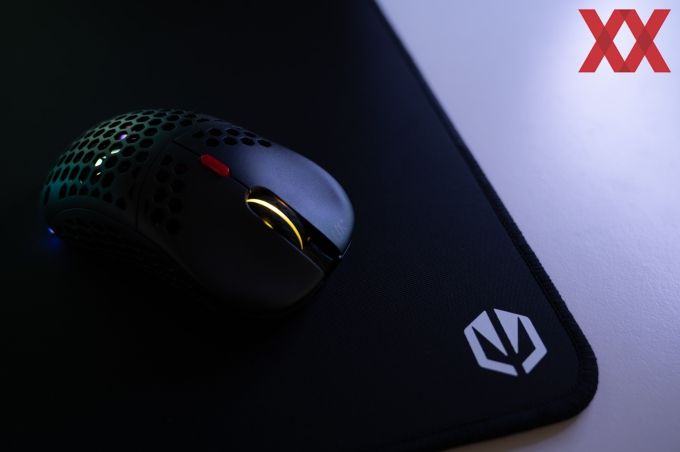 Dadurch, dass das Gehäuse mit einer offenen Struktur versehen ist, kann man einen direkten Blick in das Innere der Maus werfen und dies hat Endorfy genutzt, um das eigene Logo als RGB-Zone zu integrieren. Des Weiteren wird auch das Mausrad als RGB-Zone verwendet. Trotz der "offenen" Bauweise ist die Maus sehr stabil und auch bei sehr kräftigem Zusammendrücken des Gehäuses kann man dieses nicht verformen und es knackt auch nicht bedenklich. Verarbeitungsqualität und die generelle Materialgüte befinden sich auf einem hohen Niveau.