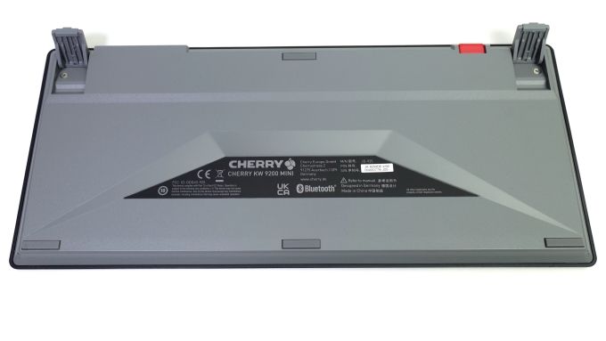 Der untere Teil des Tastaturgehäuses besteht aus grauem Kunststoff. Gummielemente direkt am Gehäuse und an den ausklappbaren Standfüßen sorgen dafür, dass die KW 9200 Mini recht rutschfest an ihrem Platz liegt (mit ausgeklappten Standfüßen etwas rutschfester als mit eingeklappten).