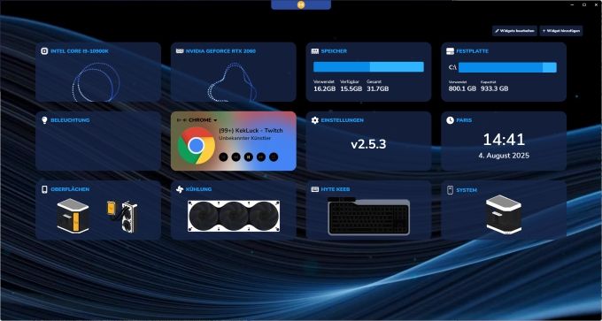 Darüber hinaus bietet Nexus eine Vielzahl an Widgets zur Systemüberwachung, darunter CPU- und GPU-Auslastung, Temperaturen oder Medieninformationen. Auch Lifestyle-Elemente wie Uhren, Galerien oder Kalender lassen sich in die Software integrieren, stehen jedoch in keinem direkten Bezug zur Tastaturfunktion.