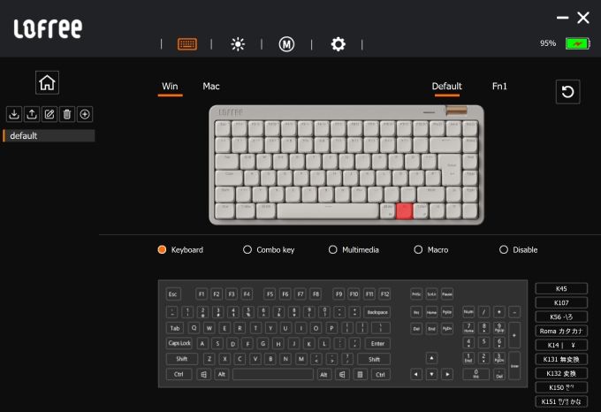 Die Konfigurationssoftware der Lofree Lite 84 hört auf den Namen Lofree Key Mapper und bietet grundlegende Funktionen zur Personalisierung der Tastatur. Die Bedienoberfläche ist übersichtlich gestaltet und ermöglicht eine schnelle Einarbeitung auch ohne tiefere Vorkenntnisse.