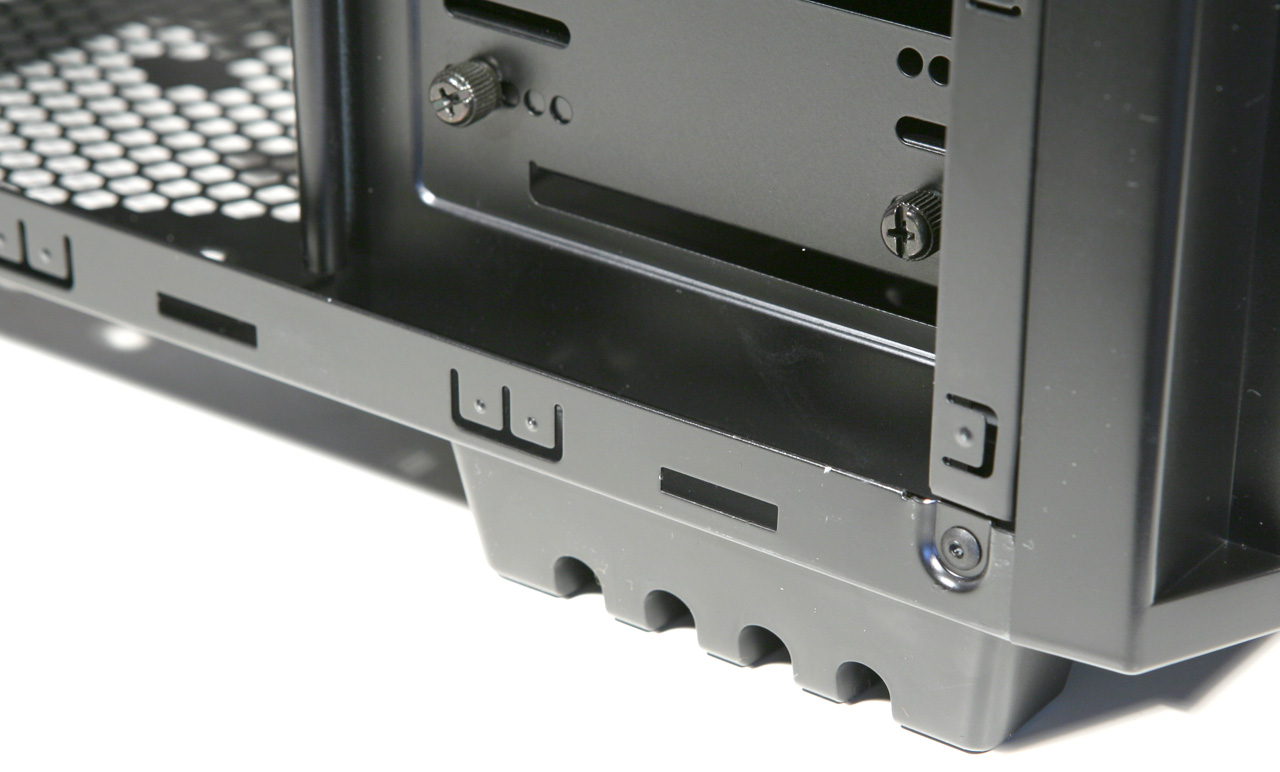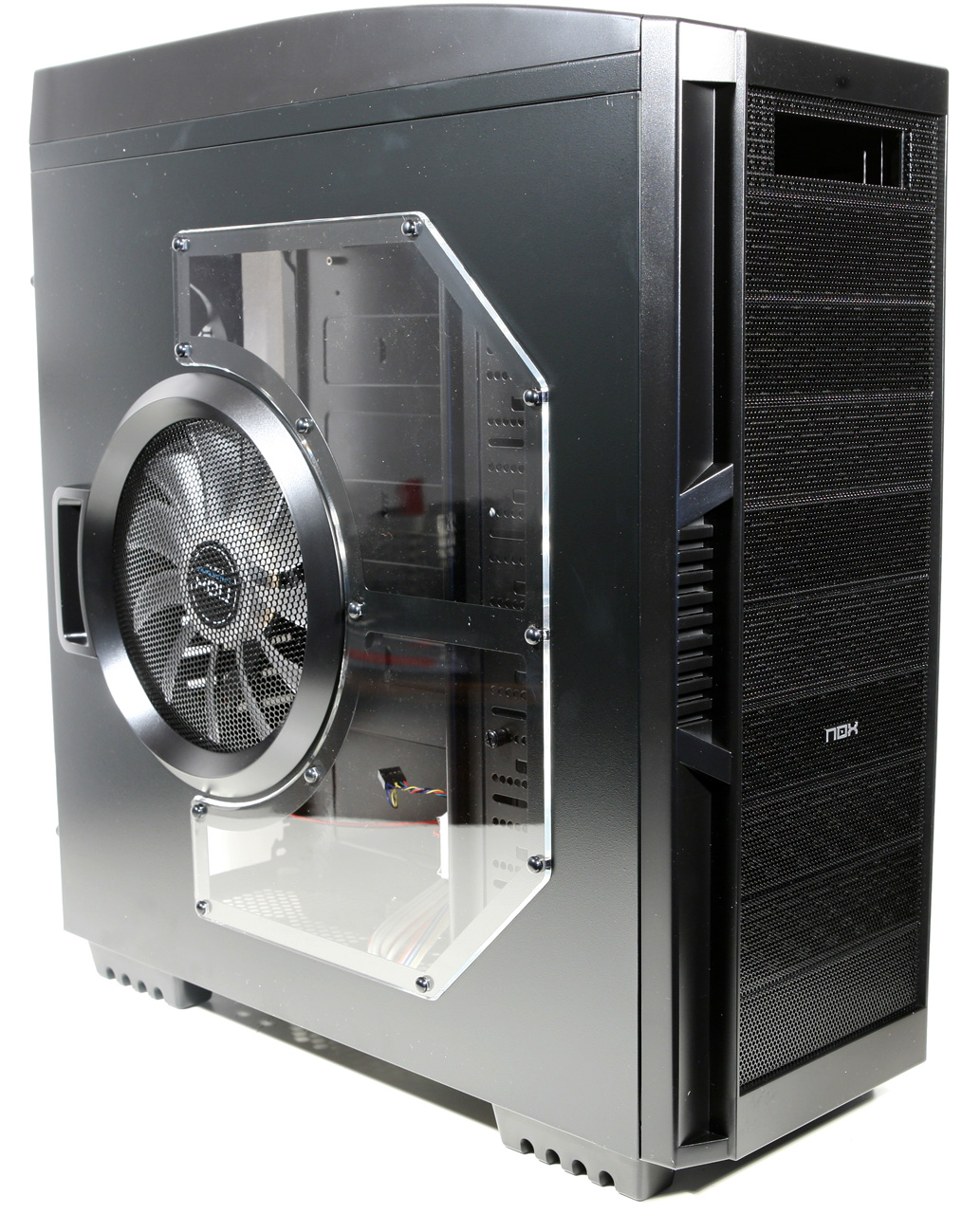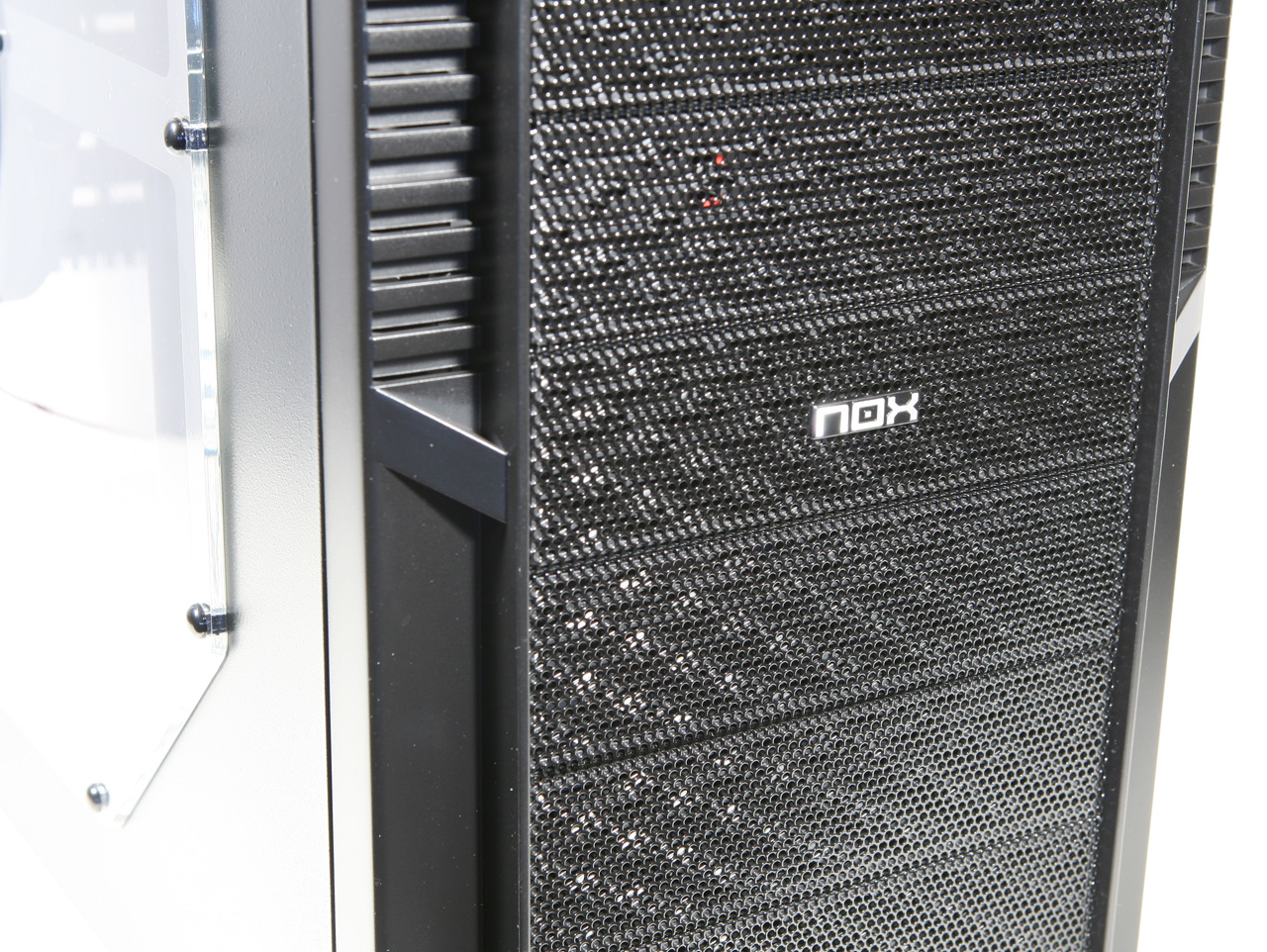 Auf einer der Mesh-Blenden wurde recht unauffällig ein kleines NOX-Logo integriert. Leider hat NOX jedoch keinen praktischen Staubschutz in die Frontblenden integriert. Es ist also davon auszugehen, dass sich das Case im Laufe der Zeit mit störendem Staub zusetzen wird. Hier bieten Konkurrenten, die teils merklich günstiger sind, wesentlich mehr.
