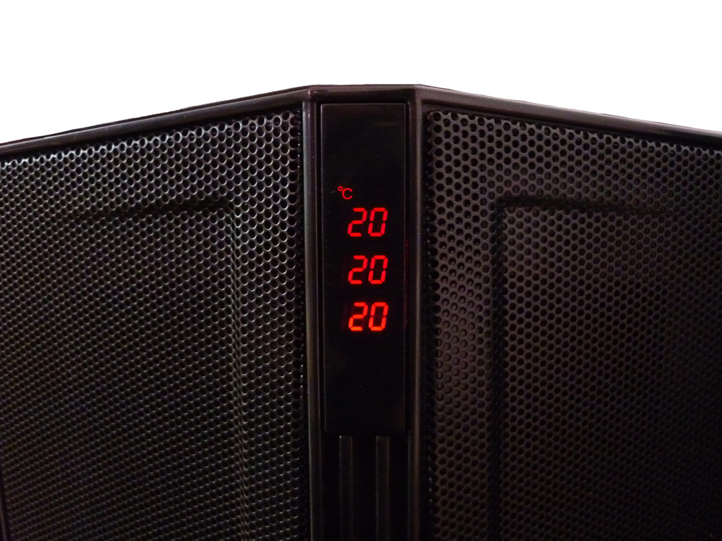 Da das Hades vorrangig für Spieler sowie Hardcore-Projekte entwickelt worden ist, darf natürlich eine Temperaturmessvorrichtung nicht fehlen. NZXT verbaut serienmäßig drei frei verlegbare Temperaturfühler im Innenraum, deren ermittelte Werte durch ein LED-Display in der Front des Gehäuses korrekt ausgegeben werden.
