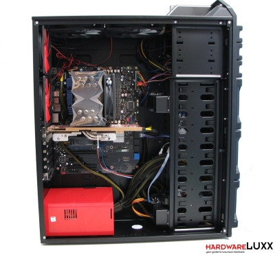 Dank des reichlichen Platzangebots war der Einbau des Testsystems denkbar unkompliziert. Die in einem Hot-Swap-Rahmen montierte Festplatte ließ sich schnell durch die Front montieren. Da es keine Entkopplung gibt, sind ihre Zugriffsgeräusche allerdings relativ deutlich hörbar.