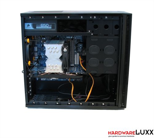 Die Installation des Testsystems war an einigen Stellen etwas aufwendiger als im Idealfall. Das Netzteil an seine Position unter dem Deckel zu bugsieren erfordert etwas mehr Geschick, als es nur auf dem Boden abzulegen. Die Montage der Grafikkarte und der Festplatte machte den Griff zum Schraubenzieher nötig, für den Zugang zum Festplattenkäfig musste zudem die Front geöffnet werden. Solange die Hardware aber nicht sehr häufig gewechselt wird, sollte das alles kein ernsthaftes Problem darstellen. Das Kabelmanagement ermöglicht ein dezentes Verlegen der Netzteilstränge.