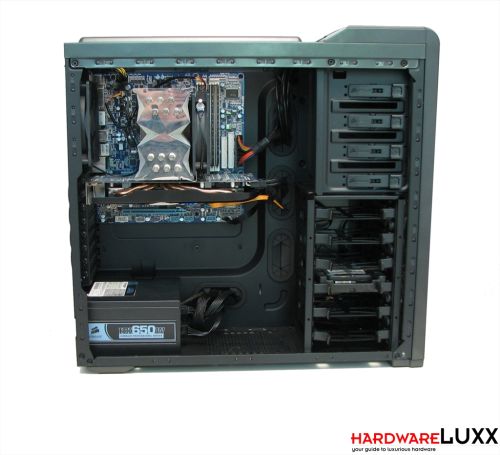 Wie schon bei bisherigen Corsair-Gehäusen, kann auch mit dem Carbide Series 400R leicht ein sehr aufgeräumter Gehäuseinnenraum verwirklicht werden. Auch die Montage des Testsystems ging leicht von der Hand, hierbei konnte vor allem die werkzeuglose Festplattenmontage überzeugen.