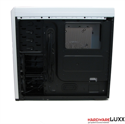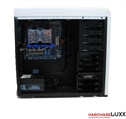 Wie schon bei bisherigen Corsair-Gehäusen kann auch mit den Modellen der Carbide Series leicht ein sehr aufgeräumter Gehäuseinnenraum verwirklicht werden. Auch die Montage des Testsystems ging leicht von der Hand, hierbei konnte vor allem die werkzeuglose Festplattenmontage überzeugen.