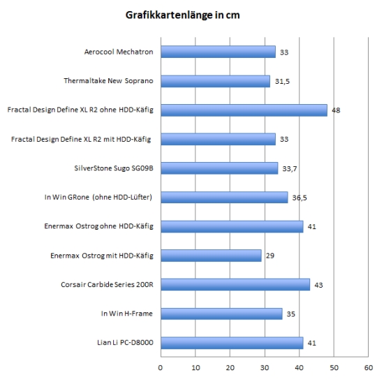 Auch bei der Grafikkarte ist man keinen Restriktionen unterworfen und kann selbst überlange Modelle wie AMDs Radeon HD 5970 nutzen.