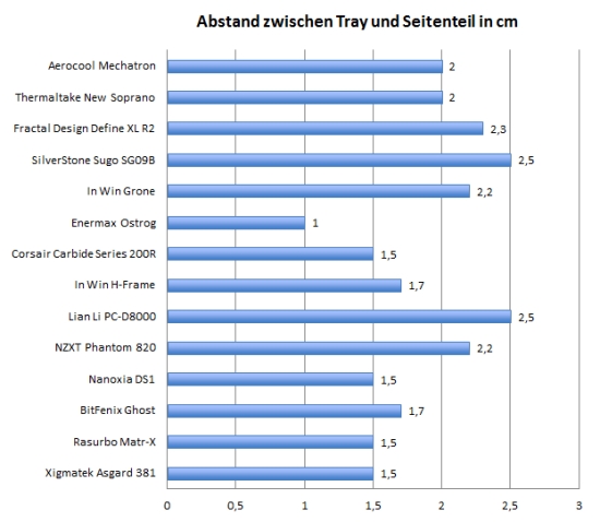 Wir messen die maximale Höhe des Prozessorkühlers und die maximale Grafikkartenlänge mithilfe eines handelsüblichen Zollstocks und berücksichtigen auch vorhandene Hersteller- bzw. Händlerangaben. Daraus resultieren gewisse Messungenauigkeiten. Die Werte können zwar als Orientierung dienen, sind aber keineswegs mm-genau.