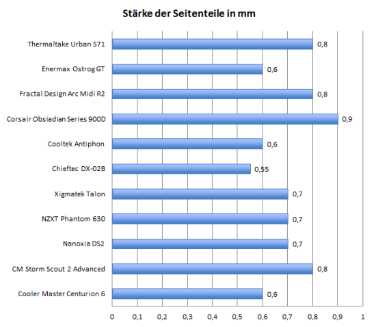 Die Seitenteile des Urban S71 sind immerhin 0,8 mm dick und damit zumindest hinreichend verwindungssteif.
