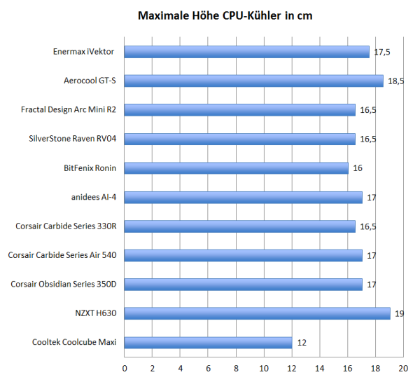 Dank der Wölbung des Seitenteils nimmt das iVektor bis zu 17,5 cm hohe Prozessorkühler auf. Für einen Midi-Tower ist das durchaus beachtlich.