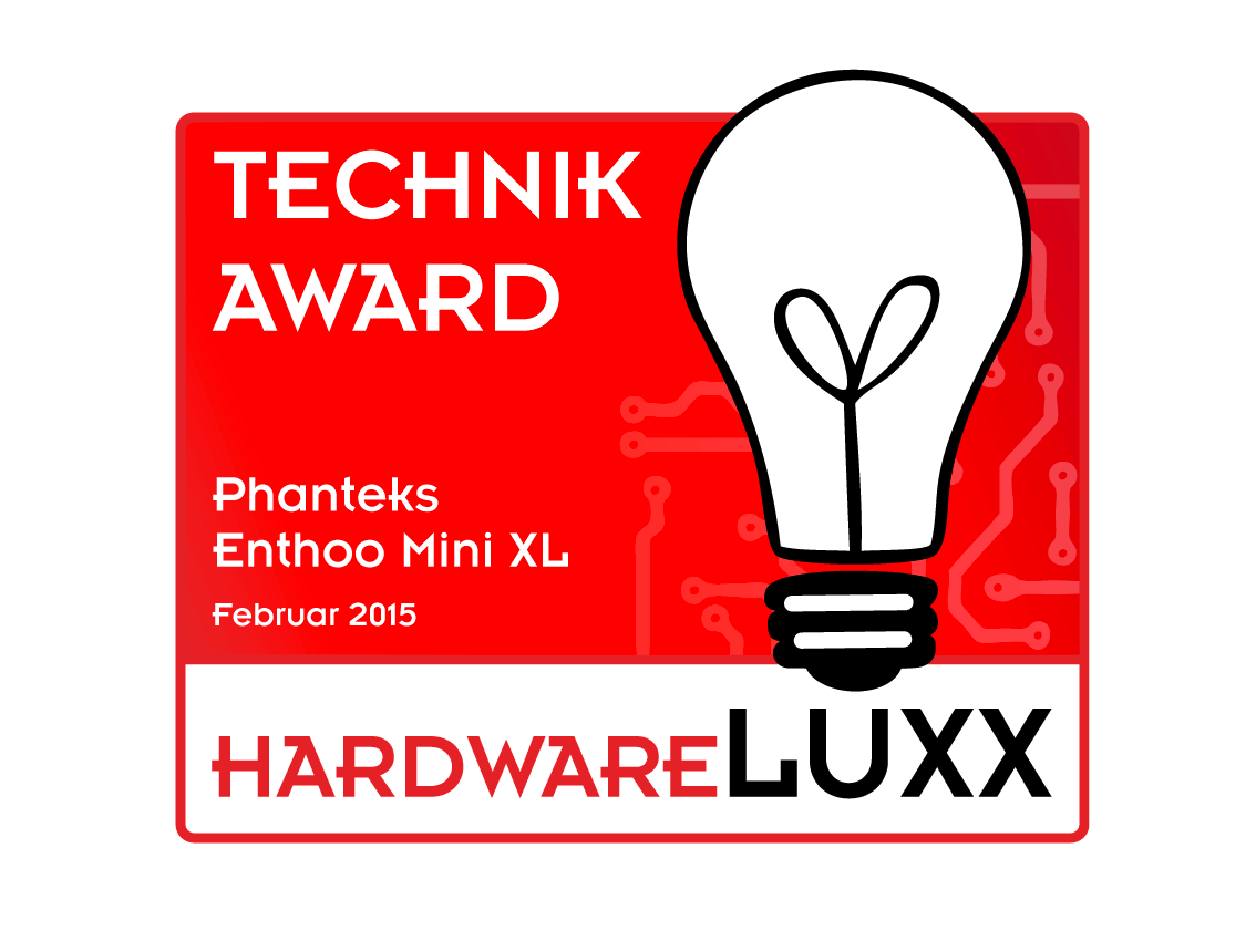 Als reines Micro-ATX-Gehäuse eröffnet das Enthoo Mini XL zwar extreme Kühloptionen und überzeugt als durchdachtes Gehäuse, es leidet aber unter einem fragwürdigen Preis-Leistungs-Verhältnis und dem XL-Format. Doch in Kombination mit dem Mini-ITX-Kit eröffnen sich völlig neue Möglichkeiten. Obwohl das Enthoo Mini XL nicht viel mehr Platz als ein typischer Midi-Tower beansprucht, können zwei PC-Systeme verbaut werden - und trotzdem mangelt es nicht an Lüfter- und Radiatorenplätzen für die Kühlung von hitziger High-End-Hardware. Das macht das Enthoo Mini XL einzigartig und rechtfertigt die Vergabe eines Technik-Awards.