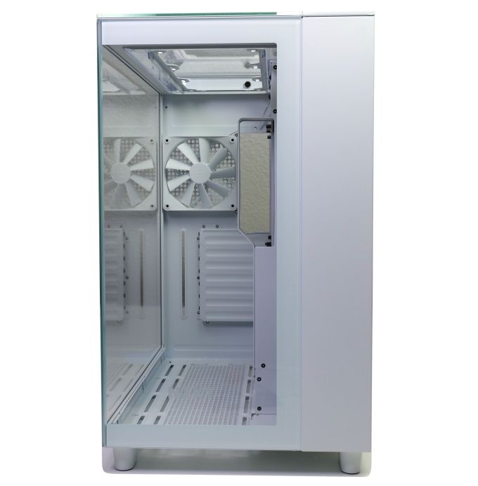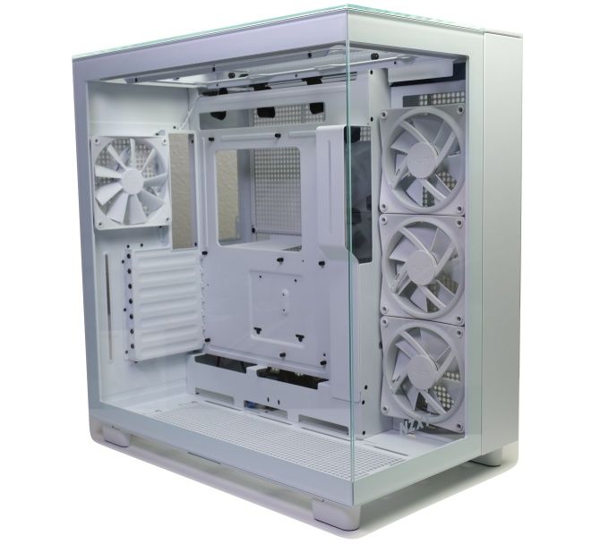 Auf den ersten Blick könnte man denken, dass das H9 Elite auf dem Foto offen ist. Bei der weißen Variante erlauben die klaren Glasflächen an Front und Seitenteil einen ungehinderten Blick ins Gehäuseinnere. Weil es an der linken vorderen Ecke keine zusätzliche Stütze gibt und die Glasflächen direkt aneinander anschließen, wirkt das Gehäuse besonders luftig. Trotz dieses Aufbaus können wir an der Stabilität des Gehäuses nichts aussetzen.