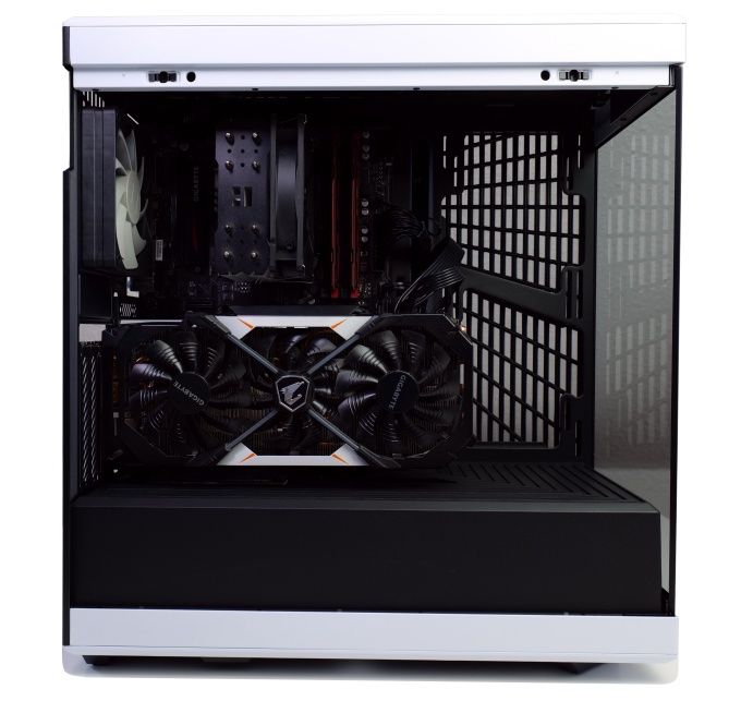 Die Grafikkarte wird vertikal vor dem Mainboard platziert. So ist sie besonders gut sichtbar. Insgesamt ließ sich das Testsystem zügig und unkompliziert montieren und verkabeln.