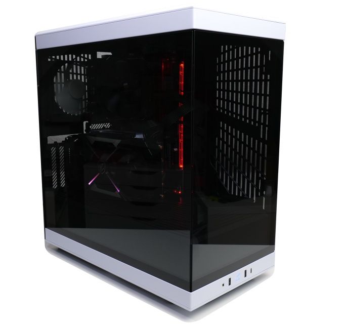 Ob man optisch nun das dreiteilige Glaspanorama des Y60 oder die zweiteilige Lösung vom Y40 bevorzugt, ist Geschmacksache. Das I/O-Panel sitzt bei beiden Modellen in Bodennähe. Sowohl Y60 als auch Y40 sollten deshalb möglichst erhöht aufgestellt werden. Ansonsten muss der Nutzer sich zum Anschalten bzw. Nutzen der Anschlüsse erst bis fast zum Fußboden beugen. Der Innenraum ist dank der abziehbaren Seitenteile und des genauso einfach abnehmbaren Deckels blitzschnell zugänglich. Für die Montage von Erweiterungskarten und Laufwerken setzt Hyte hingegen Schrauben ein.