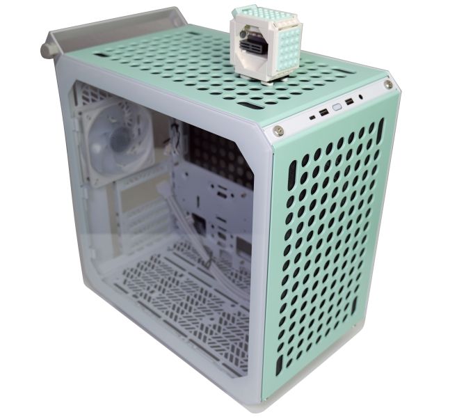 Der Zusammenbau des Qube 500 ist denkbar einfach. Die einzelnen, großen Elemente werden aneinander gehalten und mit einer überschaubaren Zahl an Kreuzschlitzschrauben verschraubt. Das ging nach unserem Eindruck schneller als der Zusammenbau des kleinen Legomodells, das Cooler Master den Pressesamples noch beigelegt hatte. Das Qube 500 misst aufgebaut nur etwa 231 x 415 x 406 mm (B x H x T). Es erinnert damit eigentlich an ein Micro-ATX-Gehäuse. Wer ein SFX-Netzteil nutzt, kann im Gehäuse aber sogar ein E-ATX-Mainboard unterbringen.