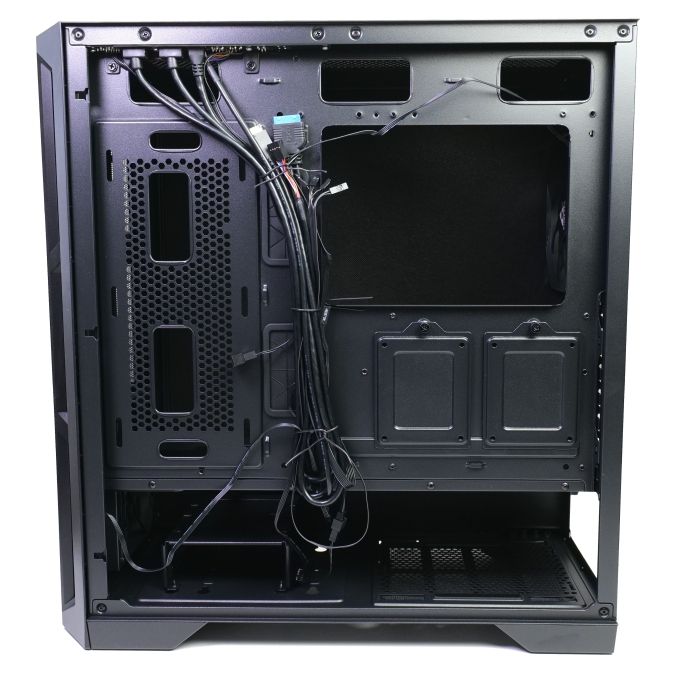 Im Mainboardtray zeigen sich sowohl Kabeldurchführungen als auch eine große Aussparung für die Montage von CPU-Kühlern mit Backplate.