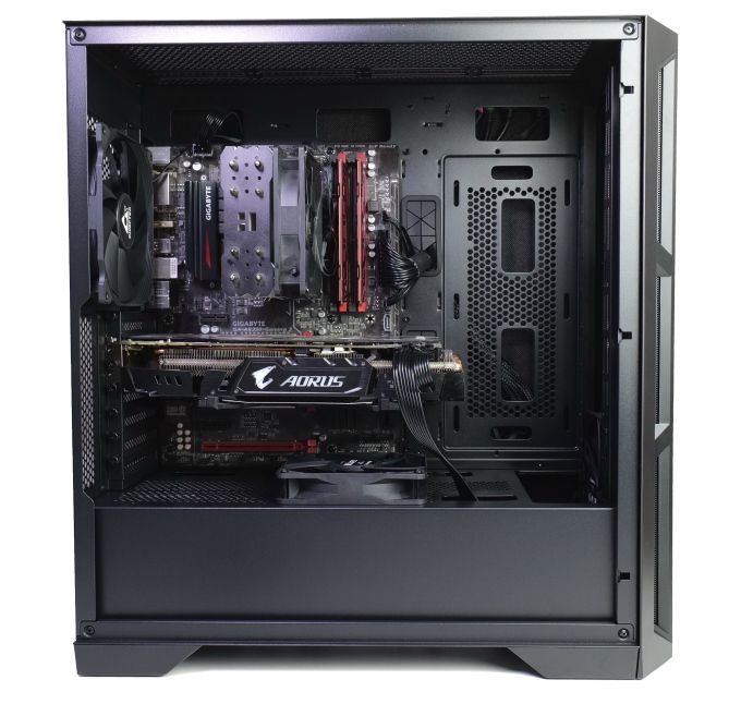 Das Testsystem findet im geräumigen Innenraum mehr als genug Platz vor. Das Kabelmanagement kann ebenfalls überzeugen. Die drei Gehäuselüfter sind PWM-Modelle, die ab Werk so miteinander verkabelt sind, dass sie über einen einzigen freien Lüfteranschluss gesteuert werden können.