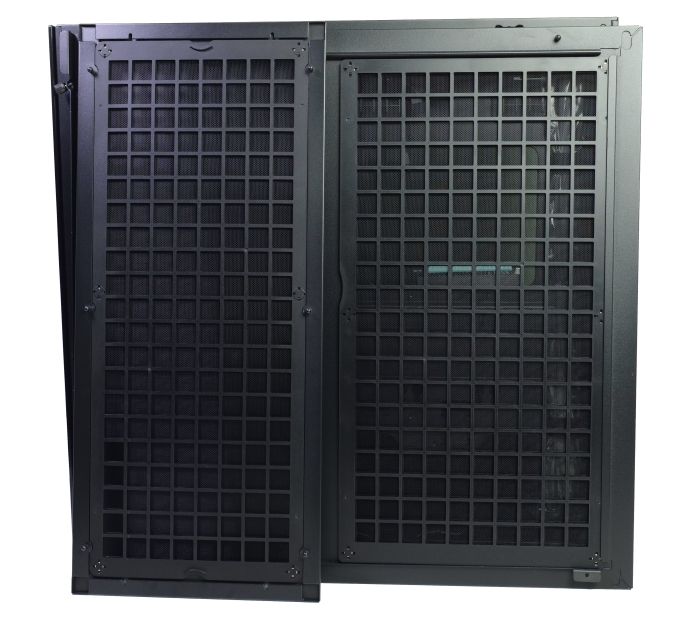 Die relativ engmaschigen Staubfilter unter dem Deckel und hinter dem Stahlseitenteil sollten Staub besser als einfache Staubgitter abhalten können. Sie haften magnetisch am Stahl und lassen sich zur Reinigung einfach entnehmen. Der Stahldeckel kann dafür mit einem Handgriff vom Gehäusekorpus abgezogen werden.