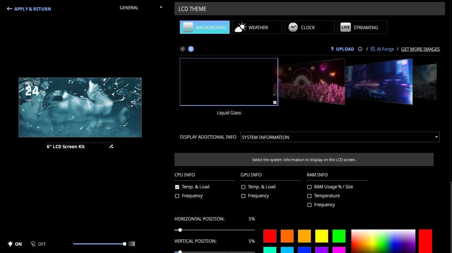 Durch optionales Zubehör kann das View 390 Air noch umgestaltet werden. Die Erweiterungskartenplätze lassen sich um 90 Grad drehen, sodass in Kombination mit einem optionalen Riserkabel eine vertikale Grafikkartenmontage möglich ist. Zudem wird separat ein neues 6-Zoll-LCD-Display angeboten (das damit deutlich größer als das bisherige 3,9 Zoll Screen Kit ist). Das findet im Gehäuse über dem Mainboard Platz und zeigt Echtzeit-Informationen oder Bilder und Animationen an.