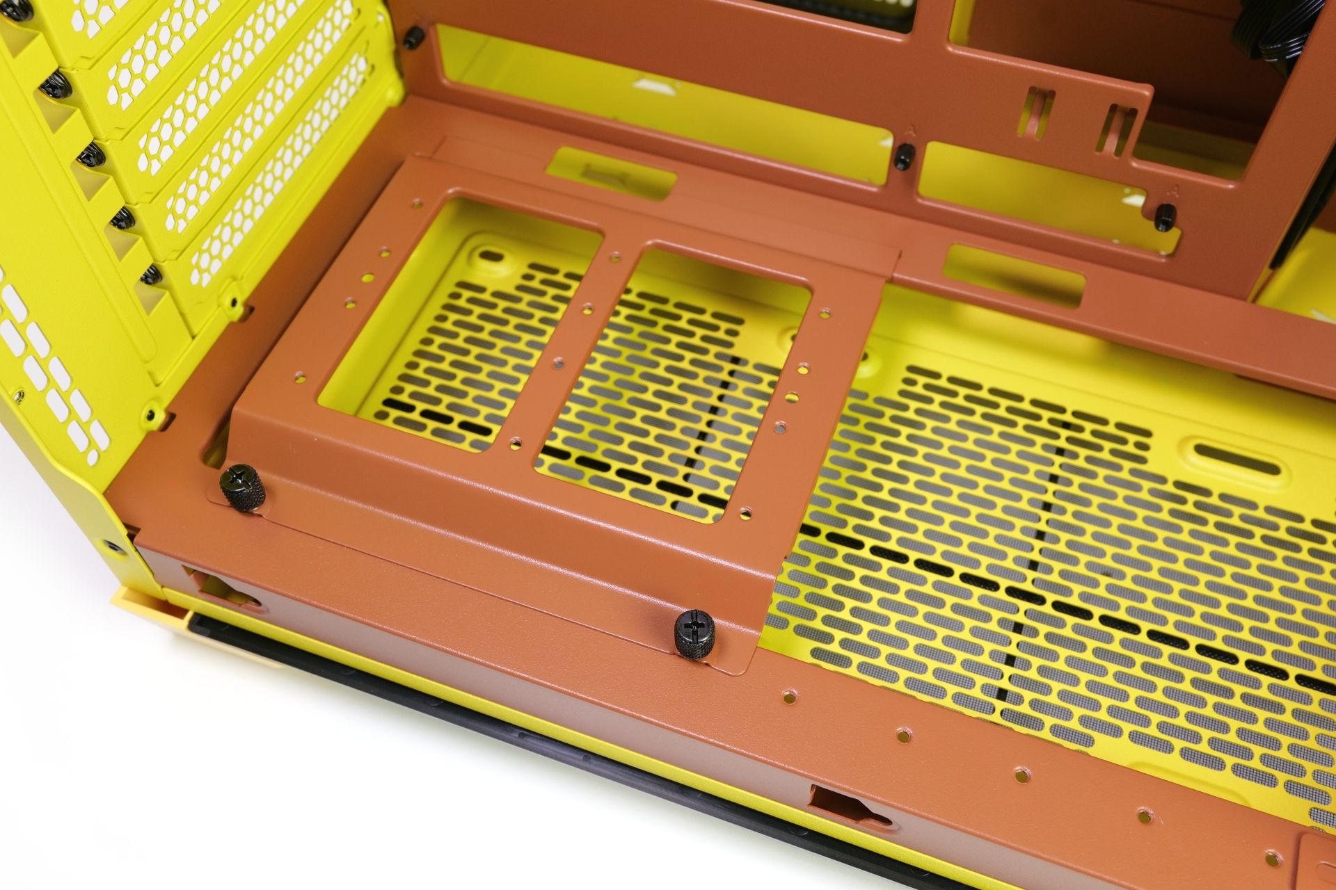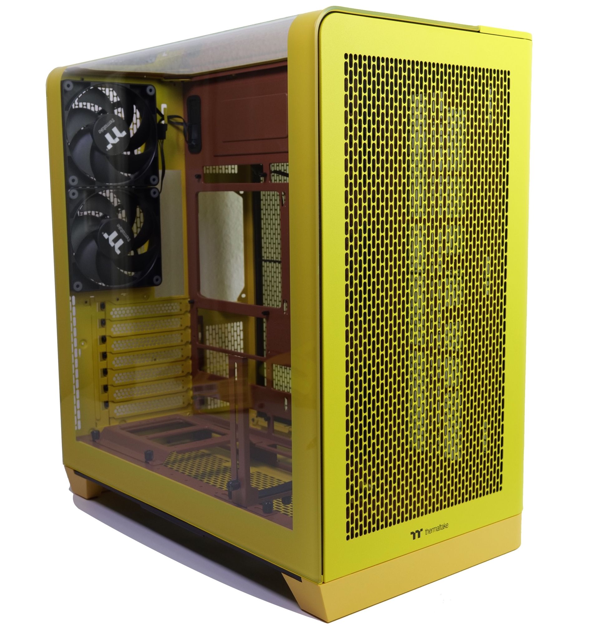 Thermaltakes View 390 Air zeigt sich mit einem gewölbten Panoramaglaselement, das sich über Seite und Deckel zieht. Im Unterschied zu anderen Showgehäusen können so Frontlüfterplätze genutzt werden. Besonders ist aber auch, dass der Midi-Tower für ein 6-Zoll-Display vorbereitet ist und in Farbvarianten wie Butter Caramel angeboten wird.