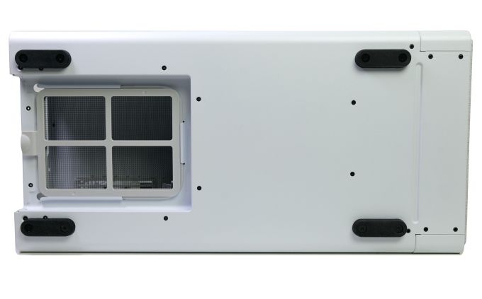 HAVN stellt das BF 360 Flow auf vier dicke Gummistreifen und verzichtet auf höhere Standfüße. Eine Vertiefung sorgt dafür, dass das Netzteil trotzdem gut von unten Frischluft ansaugen kann. Der Netzteilstaubfilter lässt sich zur Reinigung nach hinten entnehmen.