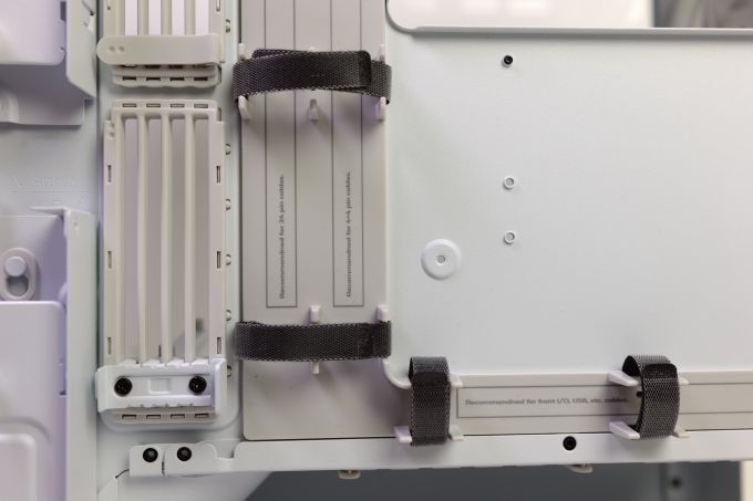 Die Kabel können darin mit Klettverschlüssen gebündelt werden. HAVN hat sogar beschriftet, welcher Kabelkanal für welches Kabel empfhohlen wird.