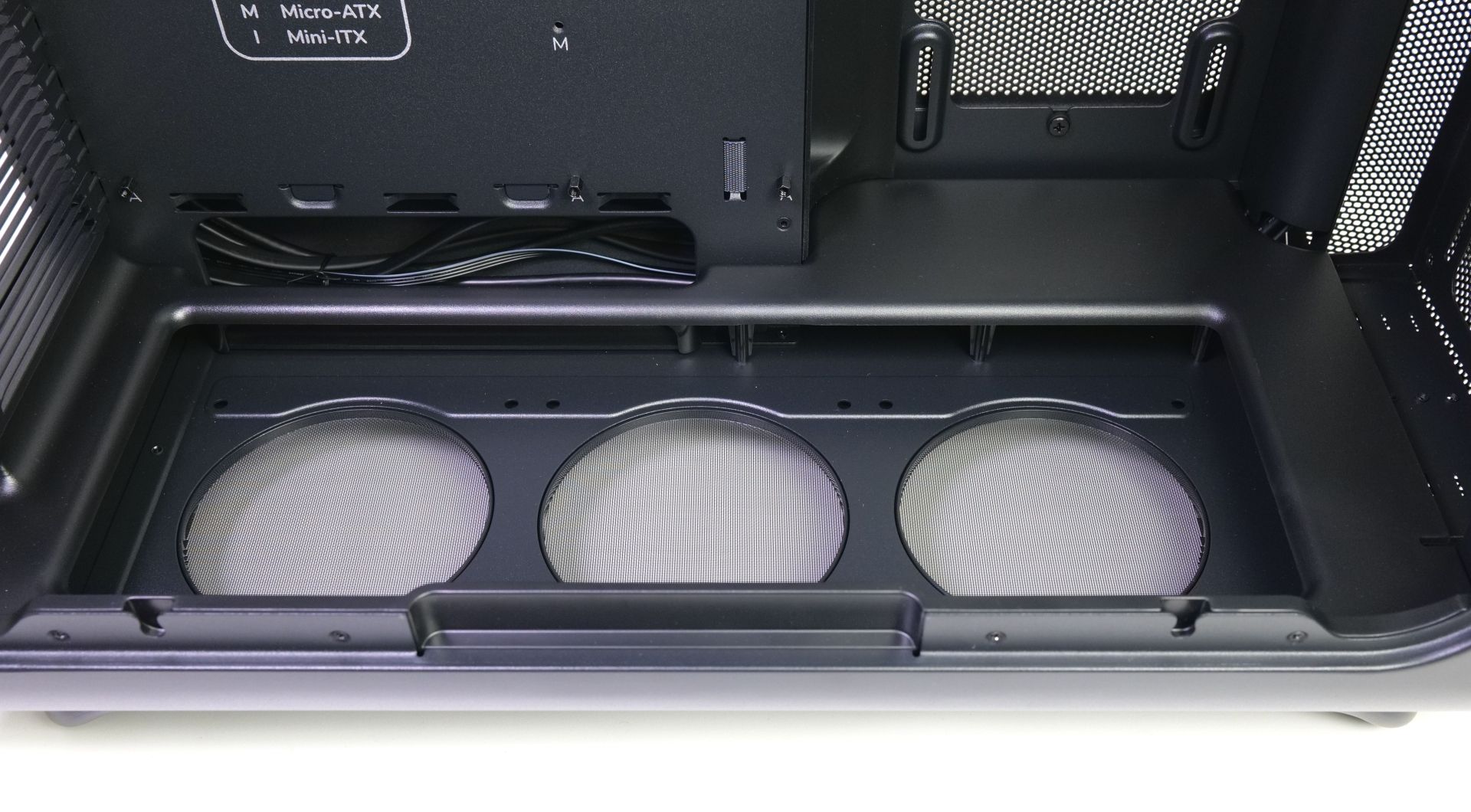 | Radiatoren (maximal laut Hersteller): | Front: 360 mm (bis zu 10,5 cm Dicke), Seite: 360 mm (bis zu 7 cm), Rückwand: 120 mm |