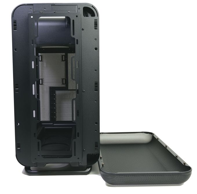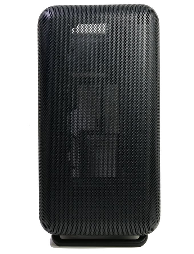Die Meshfront ist natürlich nicht nur Gestaltungselement, sondern hat in erster Linie eine funktionale Aufgabe: Sie soll dafür sorgen, dass Gehäuselüfter möglichst effektiv arbeiten können. Die stählerne Gitterfront wirkt robust. Staub wird nur durch das Mesh grob gefiltert, einen zusätzlichen Frontstaubfilter gibt es nicht.