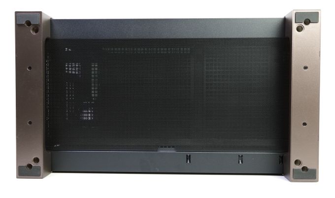 Dieses Staubgitter ist magnetisch, es lässt sich zur Reinigung oder für die Lüftermontage also leicht abnehmen. Unter dem Deckel können drei 120- oder zwei 140-mm-Lüfter nachgerüstet werden. Zudem hat In Win hier den zweiten 360-mm-Radiatorenplatz realisiert. Zwischen der Blende und der Mainboardoberkante messen wir einen Abstand von etwa 5,5 cm.