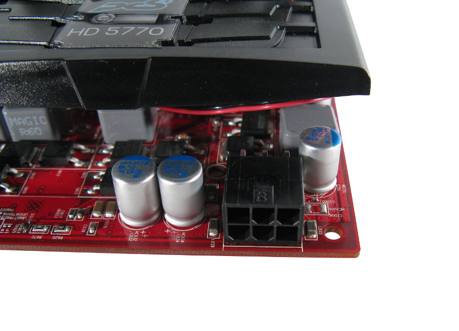 Wie alle anderen ATI-Radeon-HD-5770-Modelle kommt auch unser Testmuster mit einem 6-Pin-PCI-Express-Stromstecker daher.