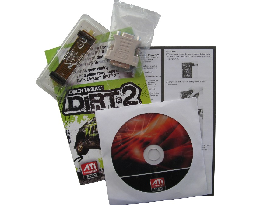 PowerColor gab seiner Radeon HD 5770 PCS+ auch ein reichhaltiges Zubehör mit auf dem Weg. Neben dem gewohnten Handbuch samt Treiber-CD, legte man auch alle benötigten Kabel und Adapter mit in den Karton. Wie derzeit bei ATI-Karten üblich, ist auch ein Dirt-2-Coupon mit im Lieferumfang enthalten, so kann der Käufer gleich in den Genuss der DirectX-11-Effekte kommen.