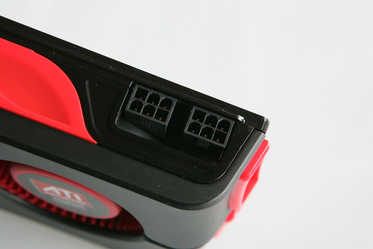 AMD gibt eine maximale Leistungsaufnahme von 175 Watt an. 75 Watt können theoretisch über den PCI-Express-Slot zur Verfügung gestellt werden. Um auch bei maximaler Leistung eine stabile Versorgung gewährleisten zu können und auch um das Mainboard zu entlasten, verbaut AMD bei der Radeon HD 5830 zwei 6-Pin-PCI-Express-Stromanschlüsse.