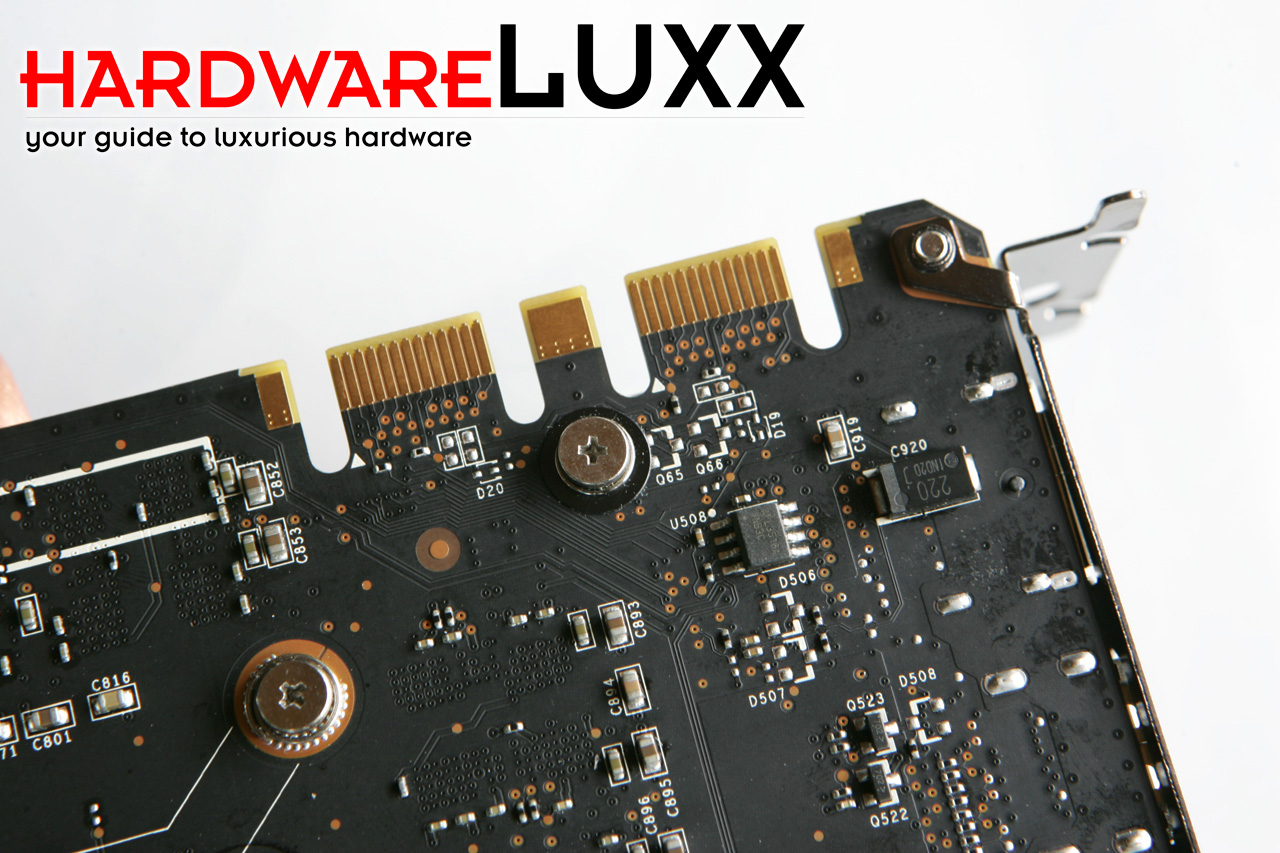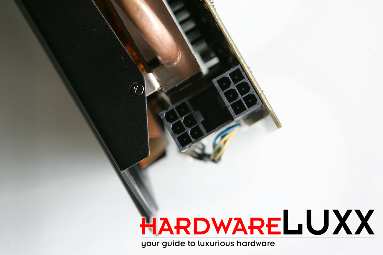 Aufgrund der Verwendung des Referenzlayouts für das PCB überrascht es uns auch nicht, dass die Stromversorgung über zwei 6-Pin-Anschlüsse erfolgt. Theoretisch können somit 225 Watt an die Karte gebracht werden.