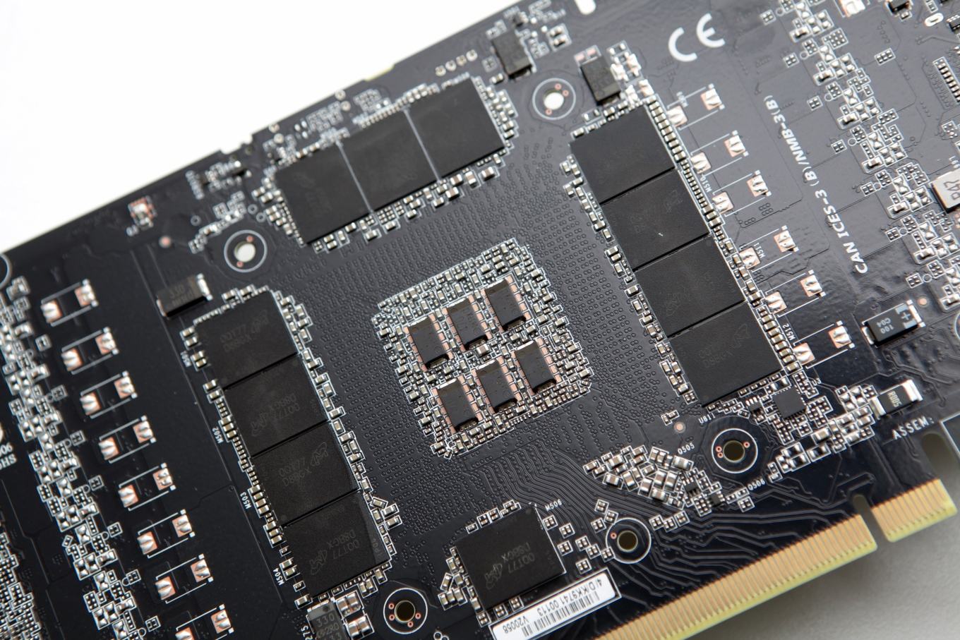 Anders als bei der GeForce RTX 3080 sind die Modelle der GeForce RTX 3090 auch rückseitig mit GDDR6X-Speicherchips bestückt, um auf den Speicherausbau von 24 GB zu kommen.