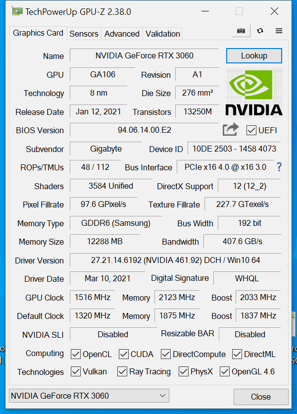 Die Gigabyte GeForce RTX 3060 Vision OC ließ noch einige Tweaks und Kniffe über sich ergehen, um am Ende höhere Taktraten und damit eine höhere Geschwindigkeit erreichen zu können. So konnten wir nicht nur das Temperatur-Target auf 90 °C erhöhen, sondern sogar das bereits ab Werk erhöhte TGP-Limit um weitere 24 % steigern. So konnten wir den Ampere-Chip um sehr gute 196 MHz beschleunigen, der effektive Boost konnte von etwa 1.942 MHz auf 2.167 MHz erhöht werden. Der Speicher ließ noch 2.123 MHz über sich ergehen und machte damit ebenfalls ein deutliches Taktplus stabil mit. Damit ist unser Testexemplar sehr gut übertaktbar.