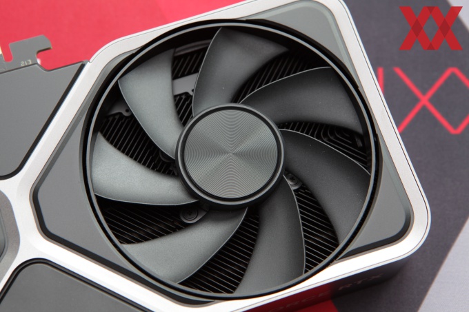 Die beiden Lüfter haben einen Durchmesser von jeweils 90 mm und drehen sich im Idle-Betrieb nicht. Steigt die GPU-Temperatur auf einen Wert von 46 °C, beginnen sich diese zu drehen. Unter Volllast kommen sie auf 1.585 Umdrehungen pro Minute. Auf die sonstigen Messwerte zur Kühlung gehen wir auf der entsprechenden Seite genauer ein.