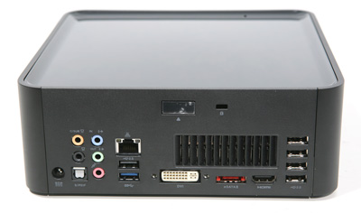 Der bislang positive Eindruck setzt sich auf der Rückseite nahtlos fort, denn auch hier wird eine riesige Anschlussvielfalt geboten. Zusätzlich zu den beiden auf der Front verbauten USB-Buchsen stehen hier noch einmal sechs Anschlüsse zur Verfügung (eine davon noch einmal im 3.0-Standard). Damit große Datenmengen auch aktuell kein Problem darstellen, wurde zudem eine eSATA-Buchse verbaut. Zur Bildausgabe stehen die bereits angesprochene HDMI-Buchse und ein DVI-Port bereit. Letzter ist Dual-Link fähig, sodass auch Maxi-Displays problemlos angeschlossen werden können.