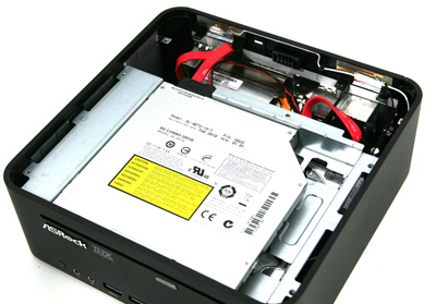 Wird der Deckmantel abgenommen, erhält man zunächst Zugriff auf das optische Laufwerk, das via SATA angebunden ist und auf diese Weise gegen anderen Slimline-Laufwerke ausgetauscht werden kann – beispielsweise auch gegen kommende 3D-Versionen.