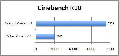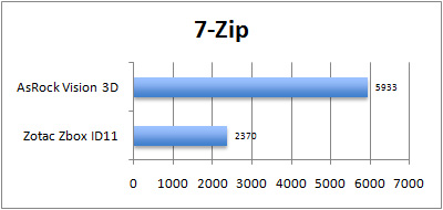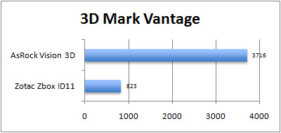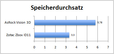 Anders als reine ION-Plattformen – zum Vergleich haben wir Zotacs Z-Box ID11 aufgeführt, die zwar kein Laufwerk besitzt, dafür aber die identische Rechen-Ausstattung besitzt, wie der große Bruder ID40 - bietet der Vision 3D eine durch die Bank ansprechende Performace.